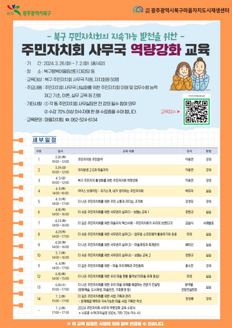 ÁÖ¹ÎÀÚġȸ »ç¹«±¹ ¿ª·® °È ±³À°Àº ºÏ±¸¸¶À»ÀÚÄ¡µµ½ÃÀç»ý¼¾ÅͰ¡ ÁÖ°üÇÏ¿© µ¿º° ÁÖ¹ÎÀÚġȸ °£ Çù·Â ³×Æ®¿öÅ©¸¦ ±¸ÃàÇϰí ÁÖ¹ÎÀÚġȸ °³³ä°ú ½ÇÁúÀûÀÎ ¿ªÇÒ ÀÌÇØ¸¦ µµ¸ðÇÏ¿© ÁÖ¹ÎÀÚġȸ ¼º°øÀûÀÎ ¸ðµ¨À» ¹ß±¼¡¤Á¤Âø½Ã۰íÀÚ ¸¶·ÃµÆ´Ù.