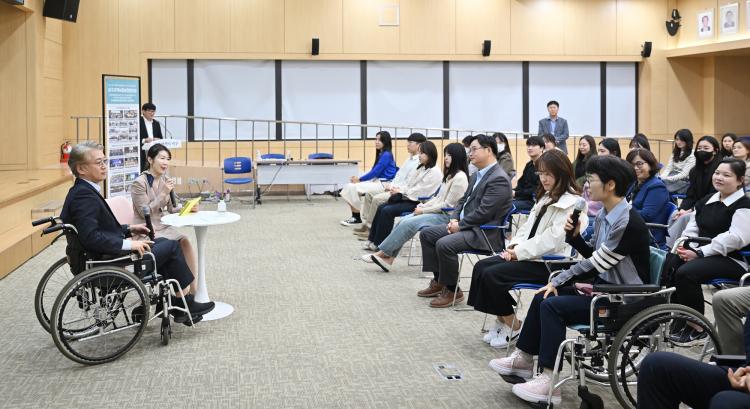ÅäÅ©¼î¿¡ Âü¼®ÇÑ ±è ûÀåÀº ¡°ÈÀå½ÇºÎÅÍ È¸ÀǽDZîÁö ´Ù³àºÃ´Âµ¥ Àå¾ÖÀÎ ¼Òº¯±â°¡ °¡Àå ¾ÈÂÊ¿¡ ÀÖ°í ȸÀÇ½Ç ¹® ¿©´Â ¹æ¹ýÀÇ ¾î·Á¿ò µî ¼¶¼¼ÇÔÀÌ ´õ ÇÊ¿äÇß´Ù´Â °É ´À²¼´Ù¡±¸ç ¡°Àå¾ÖÀÎÀ» ´Ù¸£°Ô º¸°í ¹» ÇØÁÖ´Â °ÍÀÌ ¾Æ´Ñ ´©±¸³ª ÇÔ²² ºÒÆíÇÔ ¾øÀÌ »îÀ» ´©¸± ¼ö ÀÖ´Â ÀÎÇÁ¶ó Á¶¼ºÀ» À§ÇØ Àνݳ¼±À» ºñ·ÔÇØ ¼¼Å«´ë ±³À° µî ¼±¸ »ç¾÷ Àü¹Ý¿¡¼ ¡®¹«Àå¾Öµµ½Ã ¼±¸¡¯¸¦ ¸¸µé¾î °¡°Ú´Ù¡±°í ¸»Çß´Ù.
