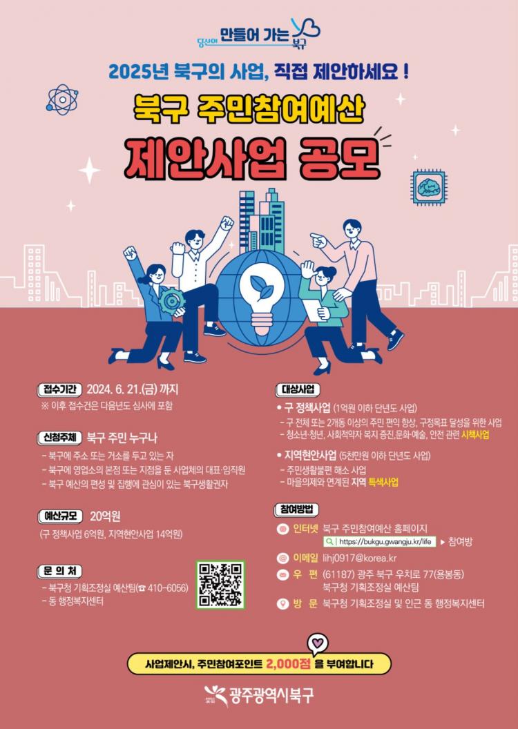 ±¤Áֽà ºÏ±¸(±¸Ã»Àå ¹®ÀÎ)°¡ ÁÖ¹ÎÀÌ Ã¼°¨ÇÏ´Â ÆíÀÍ »ç¾÷À» ¹ß±¼ÇØ ³»³âµµ ¿¹»ê¿¡ ¹Ý¿µÇϰíÀÚ 6¿ù 21ÀϱîÁö ¡®ÁÖ¹ÎÂü¿©¿¹»êÁ¦ ÁֹΠÁ¦¾È»ç¾÷ °ø¸ð¡¯¸¦ ½Ç½ÃÇÑ´Ù°í 3ÀÏ ¹àÇû´Ù.