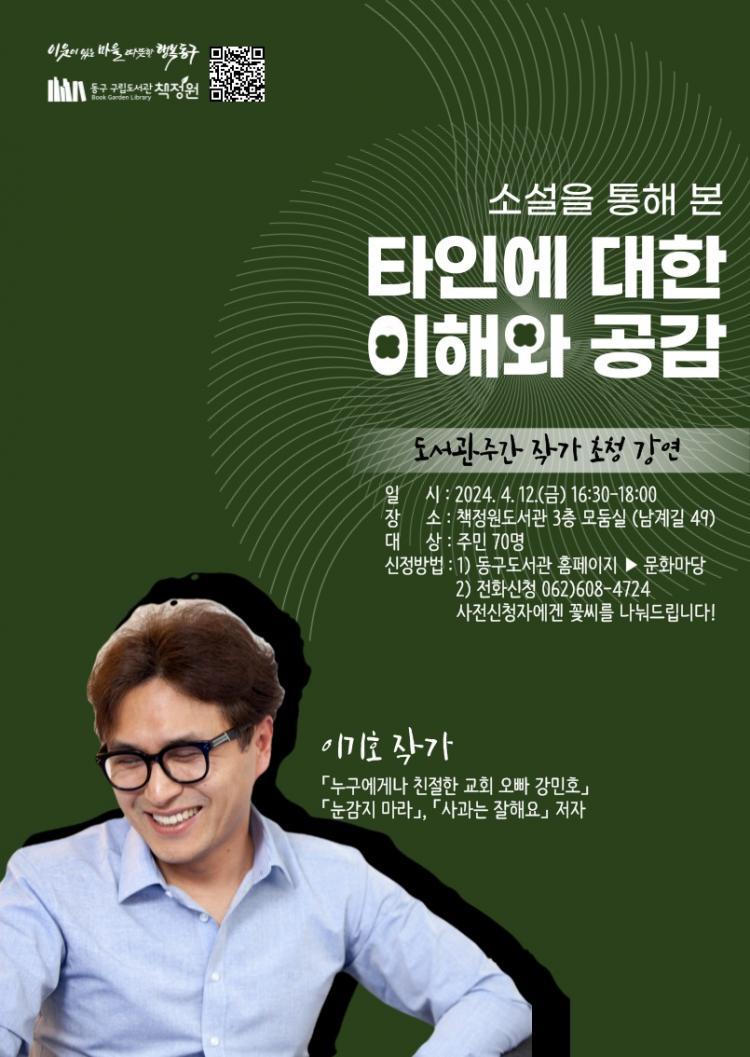 ±¤ÁÖ µ¿±¸(ûÀå ÀÓÅÃ)´Â Á¦2ȸ µµ¼°üÀÇ ³¯(4¿ù 12ÀÏ)À» ¸Â¾Æ 12ÀϺÎÅÍ 18ÀϱîÁö µ¿±¸ ±¸¸³µµ¼°ü ¡®Ã¥Á¤¿ø¡¯¿¡¼ ´Ùä·Î¿î µ¶¼¹®È Çà»ç¸¦ °³ÃÖÇÑ´Ù°í ¹àÇû´Ù.