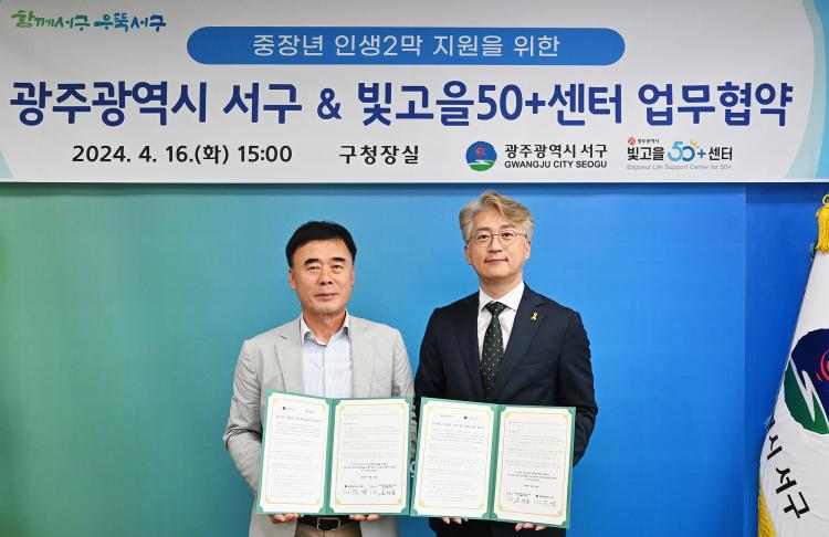 ±¤ÁÖ ¼±¸(±¸Ã»Àå ±èÀ̰)¿Í ºû°íÀ»50+¼¾ÅÍ(¼¾ÅÍÀå À¯¿µ¿ë)°¡ ÁßÀå³â(45¼¼~65¼¼ ¹Ì¸¸) Àλý 2¸·À» Áö¿øÇϱâ À§ÇØ ¼ÕÀ» ¸ÂÀâ¾Ò´Ù.