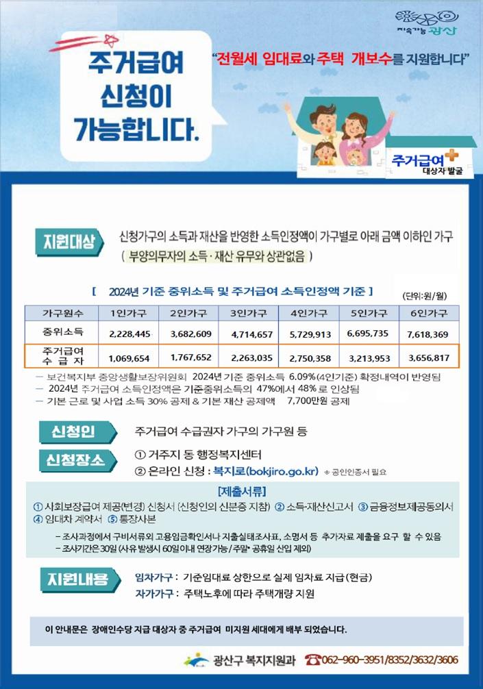 Áְű޿©´Â Ãë¾à°èÃþÀÇ ÁÖ°Å ¾ÈÁ¤°ú ÁÖ°Å ¼öÁØ Çâ»óÀ» À§ÇØ Àü¿ù¼¼ µî ÀÓÂ÷·á¸¦ º¸Á¶Çϰųª ÁÖÅà °³º¸¼ö¸¦ Áö¿øÇÏ´Â »ç¾÷À¸·Î, ±¤»ê±¸´Â ÇöÀç 235¾ï ¿øÀÇ ¿¹»êÀ» ÅõÀÔÇØ 1¸¸ 1,027°¡±¸¿¡ ¸ÂÃãÇü Áְű޿©¸¦ Áö±ÞÇϰí ÀÖ´Ù.
