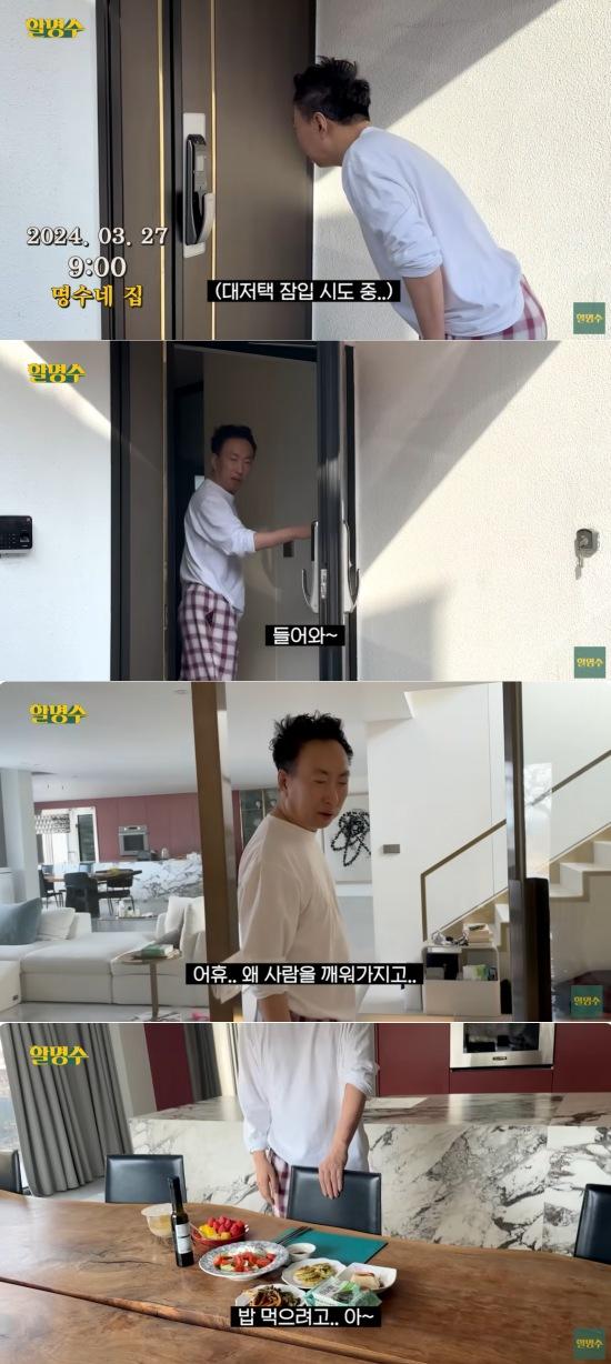 ÃÖ±Ù À¯Æ©ºê ä³Î ¡®ÇÒ¸í¼ö¡¯ Á¦ÀÛÁøÀº ¡°¹Ú¸í¼ö°¡ KBS Äð FM ¡®¶óµð¿À¼î¡¯ »ý¹æ¼ÛÀ» À§ÇØ ¸ÅÀÏ ¾ÆÄ§ Ãâ±ÙÇϴµ¥ ±×ÀÇ ÀÏ»óÀÌ ±Ã±ÝÇÏ´Ù¡±¸ç ¹Ú¸í¼ö ÁýÀ» ¹æ¹®Çß´Ù. ¹Ú¸í¼ö´Â Á¦ÀÛÁøÀÇ °©ÀÛ½º·¯¿î ¹æ¹®¿¡ ¡°¿Ö ¾ÆÄ§ºÎÅÍ ¿À°í ÁöX¡±ÀÌ³Ä¸ç Æ¯À¯ÀÇ °ÅÄ£ ÀÔ´ãÀ» µå·¯³Â´Ù. ¡°¾îÈÞ »ç¶÷À» ±ú¿ö °¡Áö°í, ³ª Áö±Ý ÀϾ´Ù ¼¼¼öµµ ¾È Çß´Ù¡±°í Çß´Ù.