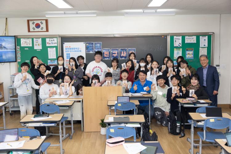ÀÌÁ¤¼± ±³À°°¨ÀÌ 24ÀÏ ±¤ÁÖµ¿¸íÁßÇб³ 1Çгâ Çлý 25¸í°ú ¡®µµÀü! Ä£±¸ »ç¶û °ñµçº§(ÀÌÇÏ °ñµçº§)¡¯ ´ëȸ¸¦ ÇÔ²² Çϸç Àå¾Ö °ø°¨ ¹®È È®»êÀ» °°ÀÌÇß´Ù.