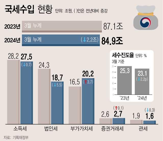 1ºÐ±â ±¹¼¼¼öÀÔ 84.9Á¶¡¦Àü³âÝï 2.2Á¶¡é