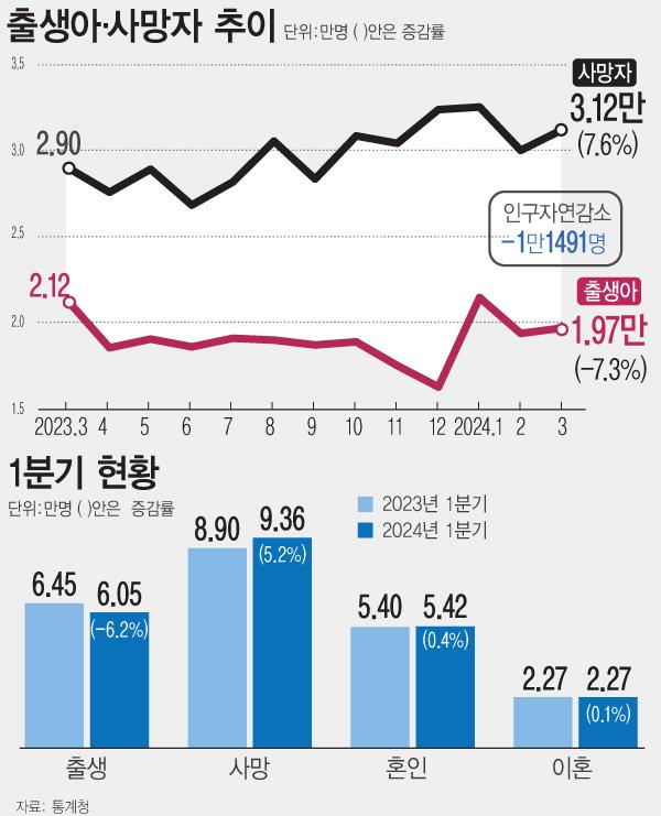 Ãâ»ý¾Æ¼ö¿¡¼ »ç¸ÁÀÚ¼ö¸¦ Á¦¿ÜÇÑ 1ºÐ±â Àα¸´Â 3¸¸3152¸í ÀÚ¿¬°¨¼ÒÇß´Ù.