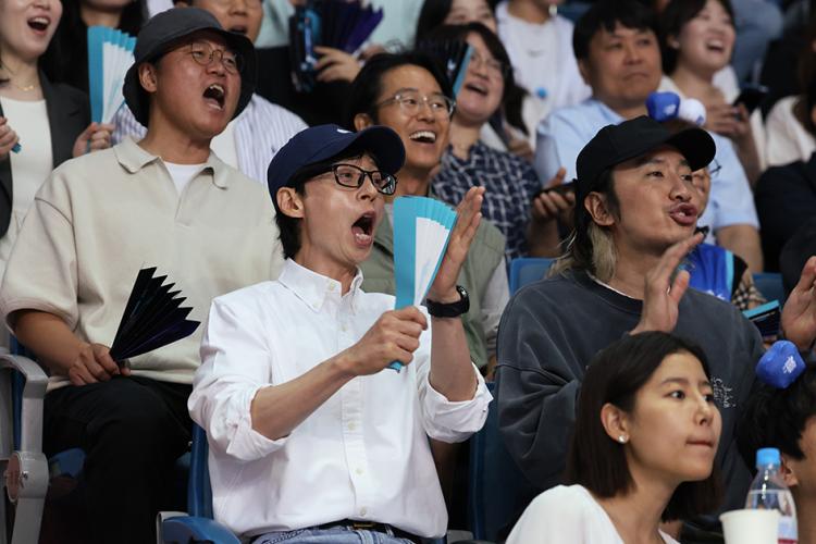 À¯Àç¼®Àº ±è¿¬°æ°ú ÇÔ²² ³ÝÇø¯½º ½Ã¸®Áî ¡®ÄÚ¸®¾Æ ³Ñ¹ö¿ø¡¯¿¡¼ ÇÔ²² È£ÈíÀ» ¸ÂÃá À̱¤¼ö¿Í µ¿ÇàÇß´Ù. ¶Ç À̳¯ ÇöÀå¿£ À¯Àç¼®°ú À̱¤¼ö ¿Ü¿¡ ³ª¿µ¼® PD, ±è´ëÁÖ ¹æ¼Û ÀÛ°¡, ¹è¿ì Á¤·Á¿ø°ú ¹Ú¼Ò´ã, °³±×¸Ç ¼ÛÀºÀÌ µîÀÌ ±è¿¬°æÀÇ ÀºÅð½ÄÀ» ºû³»Áá´Ù.