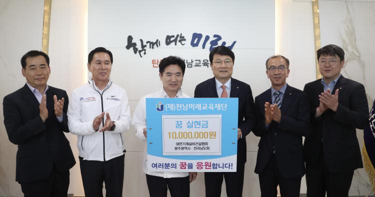 ´ëÇѱâ°è¼³ºñ°Ç¼³Çùȸ ±¤ÁÖ¡¤Àü¶ó³²µµÈ¸(ȸÀå Àü»óö)°¡ Àü³²¹Ì·¡±³À°Àç´Ü(ÀÌ»çÀå ±è´ëÁß)¿¡ ²Þ ½ÇÇö±Ý 1,000¸¸¿øÀ» Àü´ÞÇß´Ù.