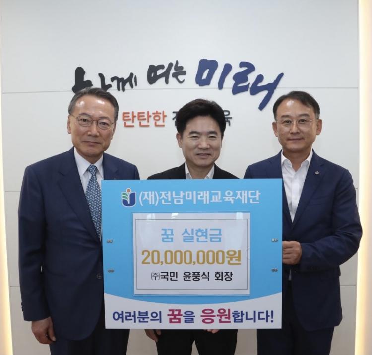 À̳¯ À± ȸÀåÀº ¡°Àü´ÞÇÑ ²Þ ½ÇÇö±ÝÀÌ Àü³² ¹Ì·¡ÀÎÀçµéÀÇ ²Þ°ú Èñ¸ÁÀ» ã°í ¼ºÀå½ÃŰ´Â µ¥¿¡ ¼ÒÁßÈ÷ ¾²¿´À¸¸é ÇÑ´Ù¡±¸ç¡°ÇâÈÄ Áö¼ÓÀûÀ¸·Î ²Þ ½ÇÇö±ÝÀ» Àü´ÞÇØ ÇлýµéÀÇ ²Þ ½ÇÇöÀ» ÀÀ¿øÇÒ ¼ö ÀÖµµ·Ï ³ë·ÂÇϰڴ١±°í ¸»Çß´Ù.