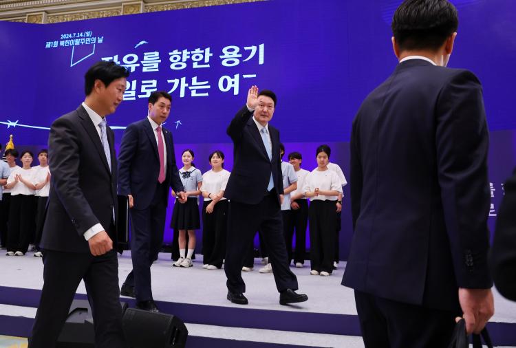 À± ´ëÅë·ÉÀº Å»ºÏ¹Îµé¿¡ ´ëÇÑ ±¸Ã¼Àû Áö¿ø ¹æ¾Èµµ ¾à¼ÓÇß´Ù. À± ´ëÅë·ÉÀº ¡°2005³â ¼öÁØ¿¡ ¸Ó¹°·¯ ÀÖ´Â Ãʱâ Á¤ÂøÁö¿ø±ÝÀ» ´ëÆø °³¼±Çϰí, ¡®¹Ì·¡ÇູÅëÀ塯À» ÅëÇØ ÀÚ»ê Çü¼ºÀ» Áö¿øÇϰڴ١±°í Çß´Ù. ¶Ç ¡°Å»ºÏ ¿©¼ºµéÀÌ ¾È½ÉÇϰí Àϰú À°¾Æ¸¦ º´ÇàÇÒ ¼ö ÀÖµµ·Ï ¾ÆÀ̵¹º½¼ºñ½º¸¦ Àû±Ø Á¦°øÇϰڴ١±¸ç ¡°ºÏÇÑ Ãâ»ý ÀÚ³à»Ó ¾Æ´Ï¶ó Á¦3±¹À̳ª ±¹³»¿¡¼ ÅÂ¾î³ ÀÚ³àµéÀ» À§ÇÑ ¾çÀ°°ú ±³À° Áö¿øµµ Á¦µµÈÇØ ³ª°¥ °Í¡±À̶ó°í ¹àÇû´Ù.