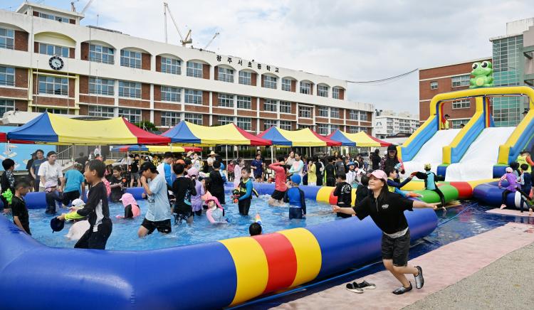 ¼±¸ ÈÁ¤1µ¿Àº 26~27ÀÏ ±¤ÁÖ¼ÃʵîÇб³ ¿îµ¿Àå¿¡¼ ¡®Á¦2ȸ ¿ì¸®µ¿³× ½æ¸Ó ǮIJ½º¡¯¸¦ °³ÃÖÇÑ´Ù. ¼±¸´Â Çб³ ¿îµ¿Àå¿¡ ´ëÇü‧ÁßÇü ¿öÅͽ½¶óÀÌµå ¹× ¼ö¿µÀåÀ» ¼³Ä¡ÇÏ°í ¹°ÃÑ´ëÀü, ¸¶¼ú°ø¿¬, ´í½ºÅ¸ÀÓ µî ÁÖ¹ÎÀÌ ÇÔ²² Âü¿©Çϰí Áñ±â´Â ÇÁ·Î±×·¥À» ¿î¿µÇÑ´Ù. ÈÁ¤1µ¿Àº Áö³ÇØ ÀÌ Çà»ç¸¦ óÀ½ ±âÈ¹ÇØ ¾ÆÀ̵鿡°Ô ¾ÈÀüÇϰí ÄèÀûÇÑ ³îÀÌȯ°æÀ» Á¦°øÇϰí Çб³ ¿îµ¿Àå °øÀ¯¸¦ ÅëÇØ ¸¶À»°ú Çб³ °£ »ó»ý‧Çù·ÂÀÇ ÀåÀ» ¸¶·ÃÇߴٴ ȣÆòÀ» ¹Þ¾Ò´Ù.