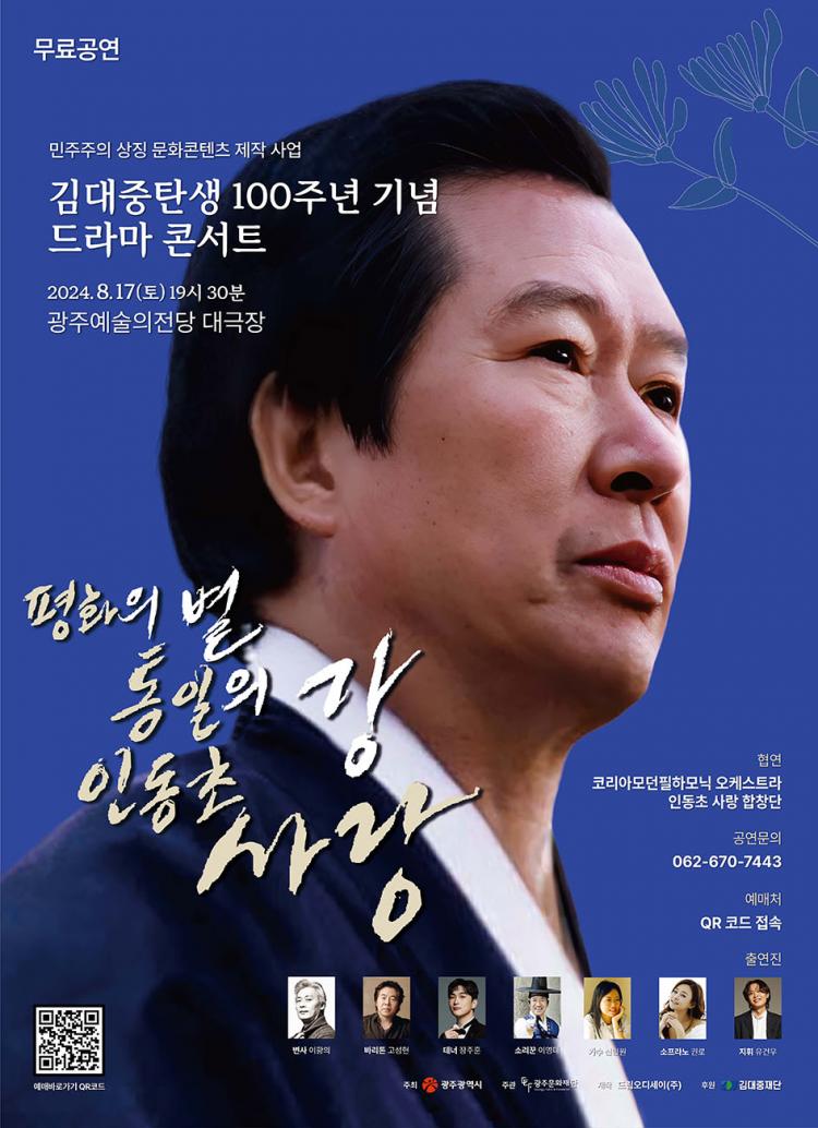 ÀÌ °ø¿¬Àº ͺ ±è´ëÁß ´ëÅë·É ź»ý 100ÁÖ³âÀ» ±â³äÇÏ¿© ±âȹµÈ ¡®µå¶ó¸¶ÄܼƮ¡¯Çü½ÄÀÇ ÀÛǰÀ¸·Î, ´ëÅë·ÉÀÇ ÀÏ´ë±â¸¦ º¯»ç ÀÌȲÀǾ¾ ÇØ¼³°ú ´õºÒ¾î ¼º¾Ç°¡ °í¼ºÇö, Á¤ÁÖÈÆ, ±Ç·Î, °¡¼ö ½ÅÇü¿ø, ¼Ò¸®²Û ÀÌ¿µÅ ¾¾ µî ´Ù¾çÇÑ À帣ÀÇ ¿¹¼ú°¡µéÀÌ ¡®ÄÚ¸®¾Æ¸ð´øÇÊÇϸð´Ð¿ÀÄɽºÆ®¶ó¿Í Àε¿ÃÊ »ç¶û ½Ã¹Î ÇÕâ´Ü¡¯ÀÇ Çù¿¬À¸·Î ¼±º¸ÀÏ ¿¹Á¤ÀÌ´Ù.
