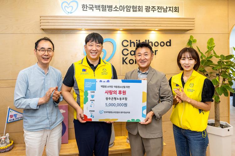 ±¤ÁÖÀºÇà ³ëÁ¶´Â ÃÖ±Ù Çѱ¹¹éÇ÷º´¼Ò¾Æ¾ÏÇùȸ ±¤ÁÖÀü³²Áöȸ¿¡ ¹éÇ÷º´ ¼Ò¾Æ¾Ï ȯ¾Æ µ½±â ±âºÎ±Ý 500¸¸¿øÀ» Àü´ÞÇß´Ù°í 7ÀÏ ¹àÇû´Ù.