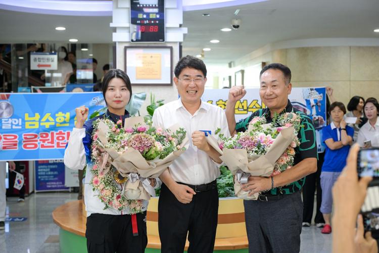 ¼øÃµ½Ã°¡ 2024 ÆÄ¸®¿Ã¸²ÇÈ ¾ç±Ã¿¡¼ Ȳ±Ýºû ÁÖ¿ªÀ¸·Î ¶°¿À¸¥ ³²¼öÇö ¼±¼öÀÇ ±Í±¹À» ȯ¿µÇß´Ù. Áö³ 6ÀÏ ¿ÀÈÄ ¼øÃµ½Ãû¿¡¼ ¿¸° ȯ¿µ½Ä¿¡´Â ³ë°ü±Ô ¼øÃµ½ÃÀåÀ» ºñ·ÔÇØ ³²¼öÇö ¾ç±Ã ±¹°¡´ëÇ¥, ³²¼öÇö ¼±¼ö ¾î¸Ó´Ï, ¼øÃµ½Ãû¾ç±ÃºÎ ÀÓµ¿ÀÏ °¨µ¶°ú ¼±¼öµéÀÌ ÇÔ²²Çß´Ù.