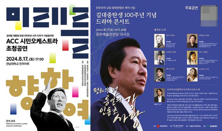 ±¤Áֽô ±è´ëÁß Àü ´ëÅë·É ź»ý 100ÁÖ³â°ú ¼°Å 15ÁÖ±â Æ¯º°À½¾Çȸ°¡ 17ÀÏ ¿ÀÈÄ 5½Ã Àü³²´ëÇб³ ¹ÎÁÖ¸¶·ç ´ë°´ç¿¡¼ ¿¸°´Ù°í 12ÀÏ ¹àÇû´Ù.