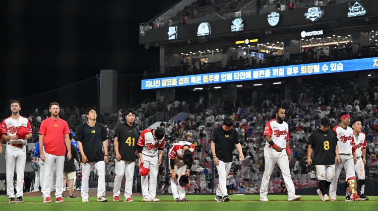 Ä¡¿ÇÑ ¼±µÎ °æÀïÀ» ¹úÀ̰í ÀÖ´Â ÇÁ·Î¾ß±¸ KIA ŸÀ̰ÅÁî¿Í LG Æ®À©½º°¡ ¿Ü³ª¹«´Ù¸®¿¡¼ ¸¶ÁÖÇÑ´Ù.