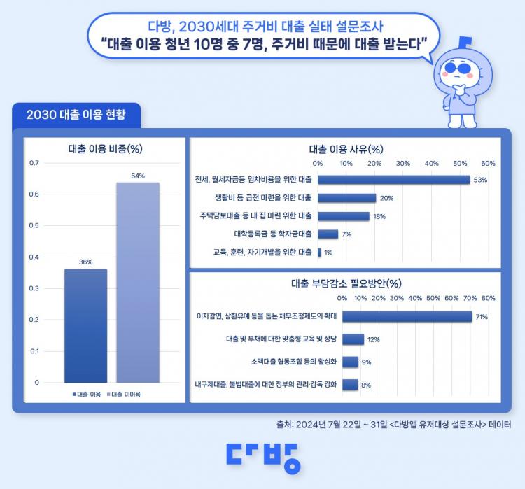 ºÎµ¿»ê Á¤º¸ Ç÷§Æû ´Ù¹æÀÌ Áö³´Þ 22ÀϺÎÅÍ 31ÀϱîÁö ¿Èê°£ ÀÚ»ç ¾ÖÇø®ÄÉÀ̼Ç(¾Û) ÀÌ¿ëÀÚ¸¦ ´ë»óÀ¸·Î Áְźñ ´ëÃâ ¼³¹®Á¶»ç¸¦ ÁøÇàÇÑ °á°ú, ¼³¹®¿¡ ÀÀ´äÇÑ 2030¼¼´ë û³â 579¸í Áß 36%ÀÎ 210¸íÀÌ ´ëÃâÀ» ¹Þ¾Ò´Ù°í ´äÇß´Ù.