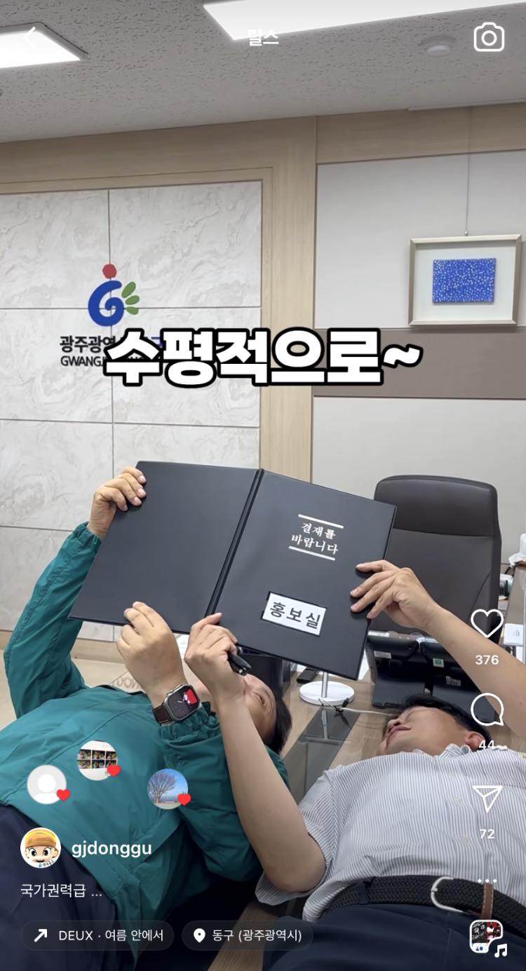 ÀÓÅà ±¤ÁÖ µ¿±¸Ã»ÀåÀÌ Á÷Á¢ Á÷¿øµéÀÌ ±Ù¹«ÇÏ´Â È«º¸½ÇÀ» ¹æ¹®ÇØ °áÀçÇÏ´Â ¸ð½ÀÀ» ´ãÀº ¿µ»ó ¡®±¹°¡±Ç·Â±Þ! Áö±Ý±îÁö ÀÌ·± °áÀç´Â ¾ø¾ú´Ù¡¯°¡ ÀÔ¼Ò¹®À» Ÿ°í È®»êÇÏ¸é¼ Å¸ ÀÚÄ¡±¸¿Í´Â Â÷º°ÈµÈ ±¸Á¤ È«º¸¸¦ À§ÇÑ ¿Á¤ Çຸ¶ó´Â Æò°¡¸¦ ¹Þ°í ÀÖ´Ù. ƯÈ÷ °ø°³ÇÑ Áö 3ÀÏ ¸¸¿¡ 4¸¸5õ ºä ºä¸¦ ³Ñ°Ü ´õ¿í ÈÁ¦´Ù.