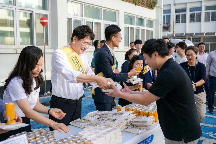 À̳¯ Ä·ÆäÀÎÀº ¿ÀÀü 08½ÃºÎÅÍ ¼øÃµ½Ãû ÈĹ® ±¤Àå¿¡¼ ÁøÇàµÇ¾úÀ¸¸ç, ¼øÃµ½ÃÀå, ³óÇùÁß¾Óȸ ¼øÃµ½ÃÁöºÎÀå, ±×¸®°í °ü³» 4°³ ³óÇùÀå µî 50¿©¸íÀÇ °ü°èÀÚ°¡ Âü¼®ÇÑ °¡¿îµ¥, ¼øÃµ½Ãû Á÷¿øµé¿¡°Ô ¼øÃµ½Ò·Î ±¸¼ºµÈ ¾ÆÄ§¹ä ¼¼Æ® 400°³¸¦ ¹èºÎÇϰí, ½Ò ¼Òºñ ÃËÁø ¹× ÀÇ´ë À¯Ä¡¸¦ À§ÇÑ ÆÛÆ÷¸Õ½ºµµ ÇÔ²² ÁøÇàÇß´Ù.