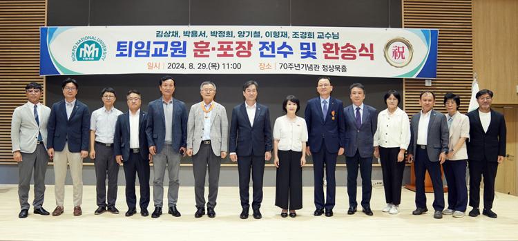 ÈÄÇÐ ¾ç¼º°ú Çб³ ¹ßÀü¿¡ À̹ÙÁöÇÑ ÅðÀÓ ±³¿øÀÇ °ø·Î¸¦ ±â¸®±â À§ÇØ ¸¶·ÃµÈ À̳¯ Çà»ç´Â, º¸Á÷±³¿ø, Çаú ±³¼öÁø ¹× Çлý µî 70¿© ¸íÀÌ ÇÔ²² Âü¼®ÇÑ °¡¿îµ¥ ±¹¹ÎÀÇ·Ê, Á¤ºÎÆ÷»ó Àü¼ö, ÃÑÀå Àλ縻¾¸, ´Üü ±â³äÃÔ¿µ ¼øÀ¸·Î ÁøÇàµÆÀ¸¸ç ÅðÀÓ ±³¿ø¿¡°Ô´Â ÈÆ¡¤Æ÷Àå(Áõ)°ú ºÎ»óÀÌ Àü¼öµÇ¾ú´Ù.