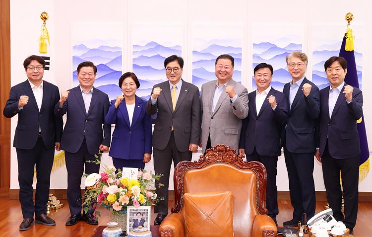 À̳¯ ±¹È¸¿¡¼ ±èÀ̰ ±¤ÁÖ ¼±¸Ã»Àå, ¹Ú½Â¿ø ±¤¸í½ÃÀå, ±è°æÀÏ ÆÄÁÖ½ÃÀå, Á¤±â¸í Àü³² ¿©¼ö½ÃÀåÀº ¿ì¿ø½Ä ±¹È¸ÀÇÀåÀ» ¸¸³ª ±¹°¡ ±âÈÄ´ëÀÀ±â±ÝÀ» Áö¿ª ±âÈÄ´ëÀÀ±â±Ý¿¡ Áö¿ø µîÀ¸·Î Ȱ¿ëÇÏ´Â ¹æ¾ÈÀ» °ÇÀÇÇϸç Áö¿ª Ư¼º¿¡ ¸Â´Â »ç¾÷ÃßÁø ȯ°æÁ¶¼ºÀ» °ÇÀÇÇß´Ù.