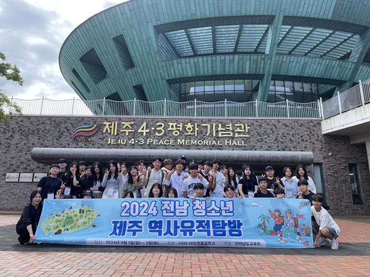 4ÀÏ »ç´Ü¹ýÀÎ 5¡¤18¹ÎÁ·ÅëÀÏÇб³¿¡ µû¸£¸é Àü³² 31°³±³ °íµîÇлý 60¸íÀÌ Áö³ 1ÀϺÎÅÍ 3ÀϱîÁö 2024 Àü³² û¼Ò³â Á¦ÁÖ¿ª»çÀ¯Àû ޹æÇà»ç¿¡ Âü¿©Çß´Ù. À̹ø Çà»ç´Â Àü³²±³À°Ã»ÀÌ ÁÖÃÖÇϰí, 5¡¤18¹ÎÁ·ÅëÀÏÇб³°¡ ÁÖ°üÇß´Ù.