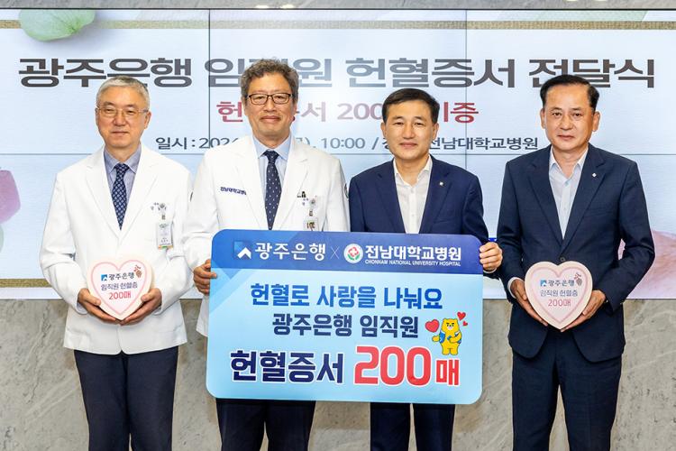 ±¤ÁÖÀºÇà, Àü³²´ëÇб³º´¿ø¿¡ ÀÓÁ÷¿ø ÇåÇ÷Áõ¼ 200¸Å ±âÁõ