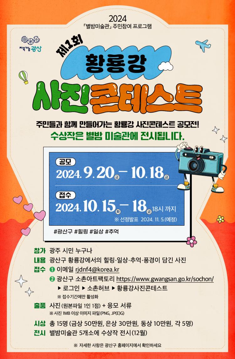 Á¦1ȸ Ȳ·æ° »çÁø ÄÜÅ×½ºÆ®¿¡ ´ëÇÑ ÀÚ¼¼ÇÑ ³»¿ëÀº ±¤»ê±¸ ¹®È¿¹¼ú°ú ¼ÒÃÌ¾ÆÆ®ÆÑÅ丮(062-960-3688)·Î ¹®ÀÇÇÏ¸é µÈ´Ù.