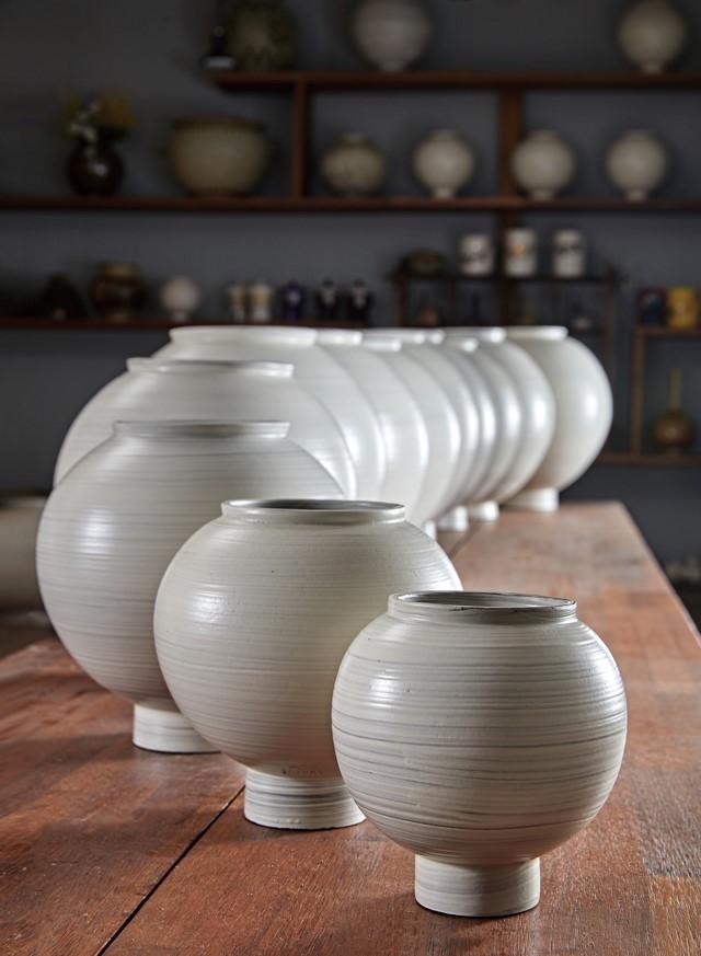 ¹ÚÁ¤±Ô ÀÛ°¡´Â ¹éÀÚ ´ÞÇ׾Ƹ® 12°³¸¦ Çѵ¥ ¸ð¾Æ Á¶ÇüÀûÀ¸·Î ½ÂȽÃŲ ÀÛǰÀ» ¼±º¸À̸ç, ÇѰ©¼ö ÀÛ°¡´Â ¹«¾È ÀûÅä¿Í ÀüÅë ¹«À¯(Ùíë¸) ±â¹ýÀ¸·Î ÀÛ°¡ÀÇ ±â¾ï ÇϳªÇϳª¸¦ È¸é ¼Ó¿¡ À籸¼ºÇÑ ±â¾ïÀÇ °¢»ö ÀÛǰÀ» ¼±º¸¿© Çö´ëÀûÀÎ µµÀÚ Á¶ÇüÀÇ »õ·Î¿î ¼¼°è¸¦ ¸¸³¯ ¼ö ÀÖ´Ù.