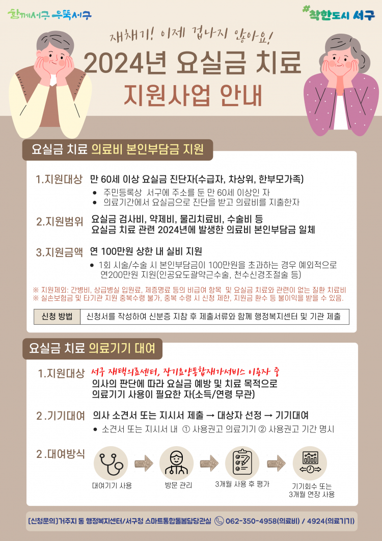 ±¤ÁÖ±¤¿ª½Ã ¼±¸(±¸Ã»Àå ±èÀ̰)°¡ 60¼¼ ÀÌ»ó Àú¼ÒµæÃþ ¿ä½Ç±Ý Áø´ÜÀÚ¸¦ ´ë»óÀ¸·Î ¡®¿ä½Ç±Ý Ä¡·á Áö¿ø »ç¾÷¡¯À» º»°Ý ½ÃÇàÇÑ´Ù.