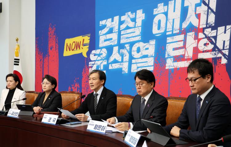 Á¶ ´ëÇ¥´Â ¹ÎÁÖ´ç¿¡ ¡°Æ¯°Ë¹ýÀº ´ëÅë·É °ÅºÎ±ÇÀ» °¨¼öÇÏ¸é¼ º»È¸ÀÇ¿¡ ¿Ã¸®¸é¼, ¿Ö °ËÂûÀÇ ¼ö»ç¿Í ±â¼Ò¸¦ ºÐ¸®ÇÏ´Â ¹ý¾ÈÀº ¾È ¿Ã¸®´À³Ä¡±¸ç ¡°¼ö»ç¡¤±â¼Ò ºÐ¸®´Â ¹ÎÁÖÁøº¸Áø¿µÀÇ ÀϰüµÇ°í ÁÖµÈ °ø¾àÀ̰í ÀÌÀç¸í ´ë¼± È帵µ °°Àº ³»¿ëÀÇ °ËÂû°³ÇõÀ» õ¸íÇß´Ù¡±°í ¾Ð¹ÚÇß´Ù.