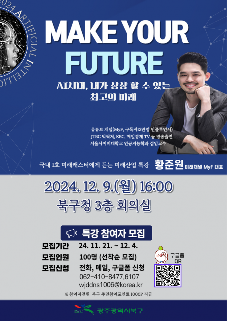 ±¤Áֽà ºÏ±¸(±¸Ã»Àå ¹®ÀÎ)°¡ ¹Ì·¡ º¯È¿¡ ´ëÇÑ ¼Ò½ÄÀ» ½±°í Àç¹Õ°Ô Àü´ÞÇÏ´Â Á÷¾÷ ¡®¹Ì·¡Ä³½ºÅÍ¡¯¸¦ âÁ÷ÇÑ È²ÁØ¿ø ¼¿ï»çÀ̹ö´ëÇб³ ÀΰøÁö´ÉÇаú ±³¼ö¸¦ ÃÊÃ»ÇØ 4Â÷ »ê¾÷Çõ¸í Ư°À» ¿î¿µÇÑ´Ù.