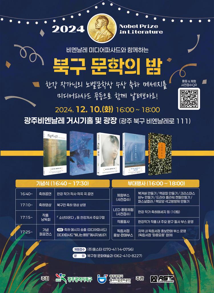 28ÀÏ ºÏ±¸¿¡ µû¸£¸é ´Ù°¡¿À´Â ¡®ÇѰ ÀÛ°¡ ³ëº§¹®Çлó ½Ã»ó½Ä¡¯À» ±â³äÇÏ¿© ¿À´Â 12¿ù 10ÀÏ ¿ÀÈÄ 4½Ã ±¤ÁÖºñ¿£³¯·¹ °Å½Ã±âȦ°ú ºñ¿£³¯·¹ ±¤Àå¿¡¼ ¡®¹Ìµð¾îÆÄ»çµå¿Í ÇÔ²²ÇÏ´Â ºÏ±¸ ¹®ÇÐÀÇ ¹ã¡¯ Çà»ç°¡ °³ÃֵȴÙ.