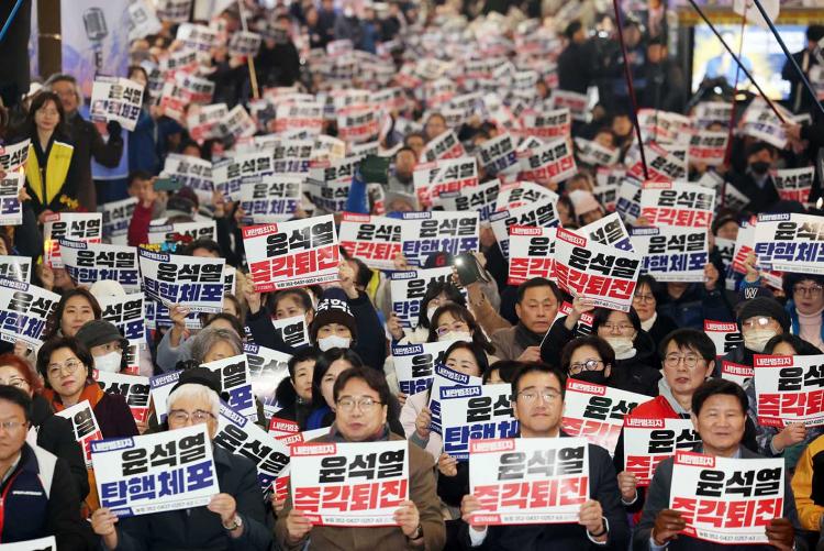 5ÀÏ °ü°¡¿¡ µû¸£¸é À± ´ëÅë·ÉÀº Áö³ 3ÀÏ ¹ã 10½Ã28ºÐ²² ±ä±Þ ´ãȸ¦ ÅëÇØ ºñ»ó°è¾öÀ» ¼±Æ÷Çß´Ù. À± ´ëÅë·ÉÀº ºñ»ó°è¾öÀ» ¼±Æ÷ÇÑ ÀÌÀ¯¿¡ ´ëÇØ ¡°Áö±Ý±îÁö ÆÐ¾ÇÁúÀ» ÀÏ»ïÀº ¸Á±¹ÀÇ ¿øÈä, ¹Ý±¹°¡ ¼¼·ÂÀ» ¹Ýµå½Ã ô°áÇϱâ À§ÇÔ¡±À̶ó°í ¹àÇû´Ù.