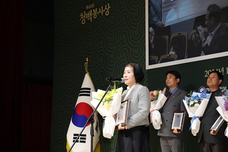 ±¤ÁÖ ³²±¸Ã» °í¿µ¹Ì(58¡¤Ãѹ«°ú) »ç¹«°üÀÌ ÇàÁ¤¾ÈÀüºÎ ÁÖ°ü Á¦48ȸ û¹éºÀ»ç»ó º»»ó ¼ö»óÀÇ ¿µ¿¹¸¦ ¾È¾Ò´Ù.