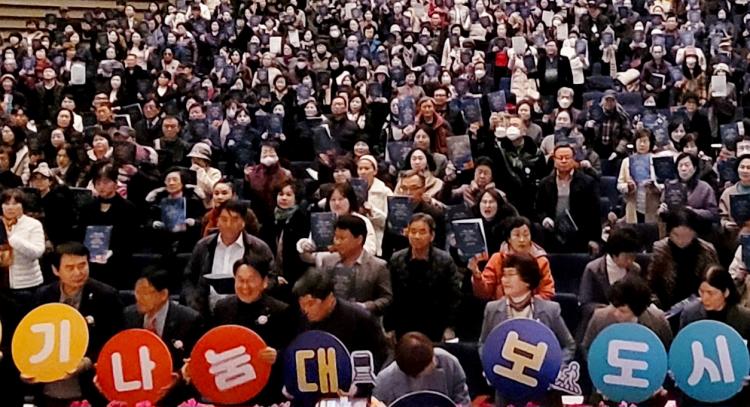 ¡®´ç½ÅÀÇ ÇÏ·ç, ¼¼»óÀÇ Èñ¸Á¡¯À» ÁÖÁ¦·Î ¿¸° À̳¯ ´ëȸ¿¡´Â °±âÁ¤ ½ÃÀå, ÀÌÁ¤¼± ½Ã±³À°°¨À» ºñ·ÔÇÑ ÀÚ¿øºÀ»çÀÚ 600¿© ¸íÀÌ Âü¼®Çß´Ù.