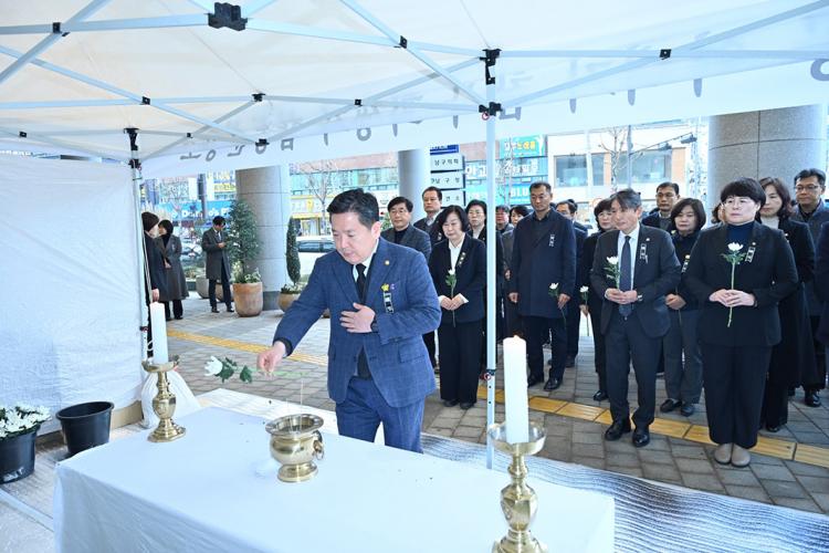 ±¤ÁÖ ³²±¸(±¸Ã»Àå ±èº´³»)´Â Á¦ÁÖÇ×°ø ¿©°´±â Âü»ç·Î Áö¿ª»çȸ°¡ Å« Ãæ°Ý¿¡ ÈÛ½ÎÀÎ °¡¿îµ¥ ±¸Ã» ¾Õ¿¡ ÇÕµ¿ ºÐÇâ¼Ò ¼³Ä¡¿Í Á¶±â °Ô¾ç µî Èñ»ýÀÚ ¾Öµµ¿¡ ³ª¼¹´Ù.