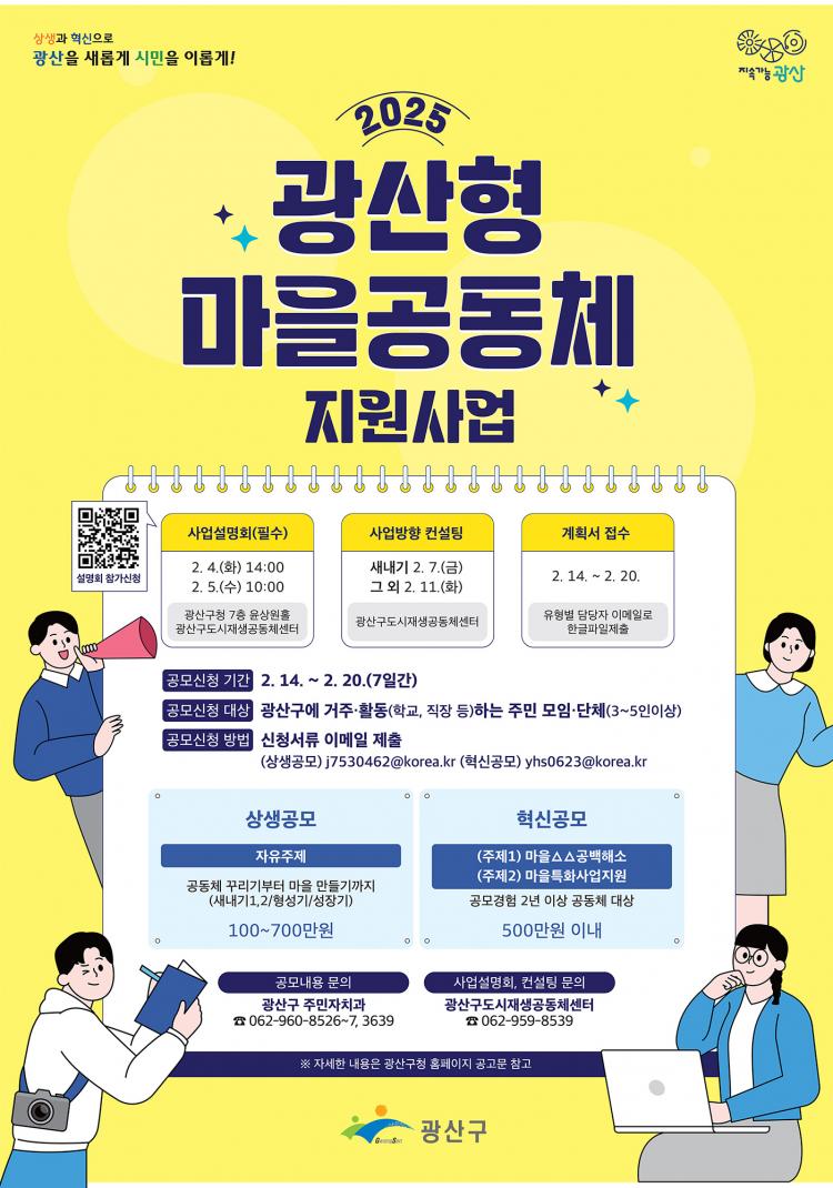 ±¤ÁÖ ±¤»ê±¸(±¸Ã»Àå ¹Úº´±Ô)°¡ Ç®»Ñ¸® ÀÚÄ¡ Ȱµ¿°ú ÁֹΠÁÖµµ ¸¶À» ¹ßÀüÀ» µÞ¹ÞħÇÏ´Â ¡®2025³â ±¤»êÇü ¸¶À»°øµ¿Ã¼ Áö¿ø»ç¾÷¡¯¿¡ Âü¿©ÇÒ ÁÖ¹Î, °øµ¿Ã¼¸¦ ¸ðÁýÇÑ´Ù.
