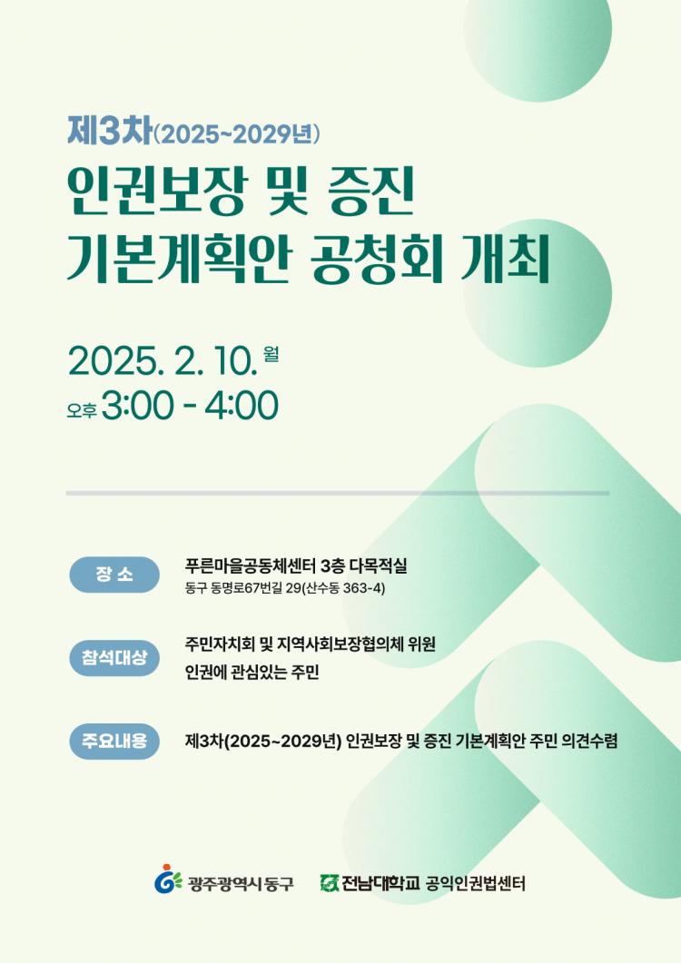 ±¤ÁÖ µ¿±¸(ûÀå ÀÓÅÃ)´Â ¡®Á¦3Â÷ À뱂 º¸Àå ¹× ÁõÁø ±âº»°èȹ(¾È)¡¯ °øÃ»È¸¸¦ ¿À´Â 10ÀÏ ¿ÀÈÄ 3½Ã Ǫ¸¥¸¶À»°øµ¿Ã¼¼¾ÅÍ¿¡¼ °³ÃÖÇÑ´Ù°í ¹àÇû´Ù.