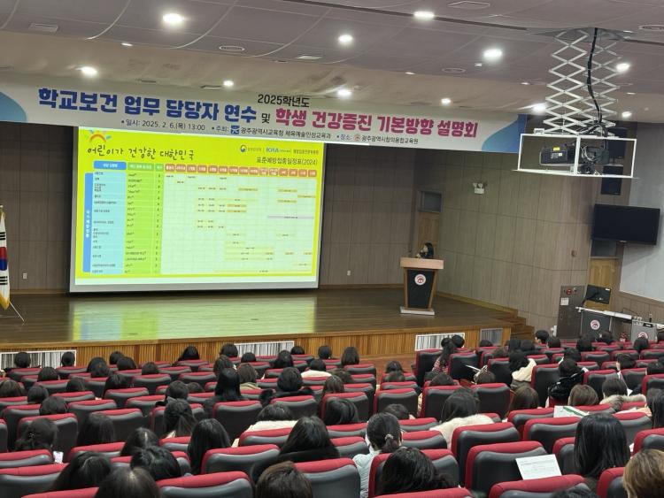 ±¤Áֽñ³À°Ã»(±³À°°¨ ÀÌÁ¤¼±)Àº 6ÀÏ ±¤ÁÖâÀÇÀ¶ÇÕ±³À°¿ø ´ë°´ç¿¡¼ Çб³¿Í ±³À°Áö¿øÃ»¿¡¼ ±Ù¹«ÇÏ´Â Çб³º¸°Ç¾÷¹« ´ã´çÀÚ¸¦ ´ë»óÀ¸·Î ¡®2025Çг⵵ Çб³º¸°Ç ¾÷¹« ´ã´çÀÚ ¿¬¼ö ¹× Çлý °Ç°ÁõÁø ±âº» ¹æÇâ ¼³¸íȸ¡¯¸¦ °³ÃÖÇß´Ù.