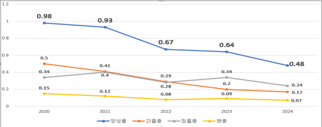 ¡®24³âµµ ±â»ýÃæ °¨¿°·üÀº 0.48%·Î ¡®23³â(0.64%) ´ëºñ 0.16% °¨¼Ò