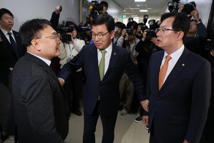 ¿©¾ß°¡ Áß¾Ó¼±°Å°ü¸®À§¿øÈ¸(¼±°üÀ§) °íÀ§Á÷ ÀÚ³à ä¿ëºñ¸® ÀÇȤÀ» µÎ°í Ãæµ¹ÇÏ¸é¼ ±¹È¸ ÇàÁ¤¾ÈÀüÀ§¿øÈ¸ÀÇ ±è´ë¿õ ¼±°üÀ§¿ø Èĺ¸ÀÚ Àλçû¹®È¸°¡ ÀϽà ÁߴܵƴÙ.