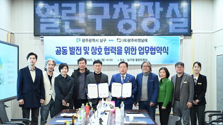±¤ÁÖ ³²±¸(±¸Ã»Àå ±èº´³»)¿Í (Àç)±¤ÁÖºñ¿£³¯·¹°¡ ¹®È¿¹¼úÀ» ÅëÇÑ »óÈ£ ¹ßÀü ¹× ±³·ù Ȱ¼ºÈ¸¦ À§ÇØ ¼ÕÀ» ¸ÂÀâ¾Ò´Ù.