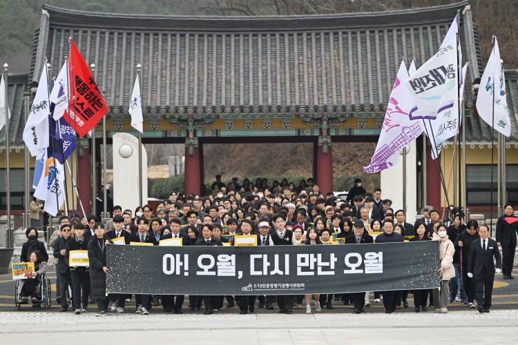 ¡®¾Æ ¿À¿ù, ´Ù½Ã ¸¸³ ¿À¿ù¡¯À» ÁÖÁ¦·Î Ãâ¹üÇÑ Çà»çÀ§´Â 5¡¤18 Á¤½ÅÀ» ´ëÇѹα¹ ¹ÎÁÖÁÖÀÇÀÇ ½ÉÀåÀÌÀÚ »Ñ¸®·Î °ø°íÈ÷ÇÏ¸é¼ 5¡¤18 ´ç½Ã¿Í 12¡¤3 ºñ»ó °è¾öÀ» °ÞÀº ¼¼´ëµéÀÇ ÅëÇÕÀ» ÀÌ·ï³¾ °ÍÀ» ´ÙÁüÇß´Ù.