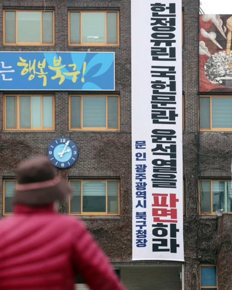 û»ç ¿Üº®¿¡ À±¼®¿ ´ëÅë·É ÆÄ¸éÀ» Ã˱¸ÇÏ´Â °³ÀÎ ¸íÀÇÀÇ Çö¼ö¸·À» ³»°Ç ¹®ÀÎ ±¤ÁÖ ºÏ±¸Ã»ÀåÀÌ °úÅ·Ḧ ³³ºÎÇß´Ù.