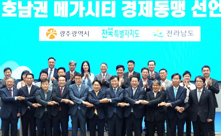 ±¤ÁÖ½Ã¿Í Àü³²µµ, ÀüºÏƯº°ÀÚÄ¡µµ°¡ 23ÀÏ ³ªÁÖ½Ãû ´ëȸÀǽǿ¡¼ 2036Çϰè¿Ã¸²ÇÈ ¼º°ø À¯Ä¡¸¦ ±â¿øÇϰí, È£³²±Ç ¸Þ°¡½ÃƼ °æÁ¦µ¿¸Í °È¸¦ À§ÇÑ 3ÀÚ ¾÷¹«Çù¾àÀ» ü°áÇß´Ù.