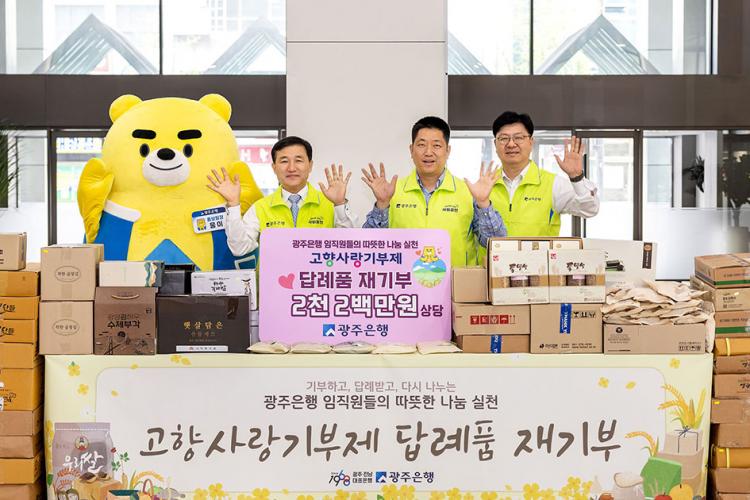 ±¤ÁÖÀºÇàÀº Àü³¯ °íº´ÀÏ ÀºÇàÀåÀ» ºñ·ÔÇÑ ÀÓÁ÷¿øµéÀÌ °íÇâ»ç¶û±âºÎÁ¦¿¡ ÀÚ¹ßÀûÀ¸·Î Âü¿©ÇØ ¹ÞÀº ´ä·ÊǰÀ» ´Ù½Ã Áö¿ª»çȸ¿¡ ±âºÎÇÏ´Â ¡®°íÇâ»ç¶û±âºÎÁ¦ ´ä·Êǰ Àç±âºÎ¡¯ Çà»ç¸¦ Çß´Ù°í Áö³ 11ÀÏ ¹àÇû´Ù.