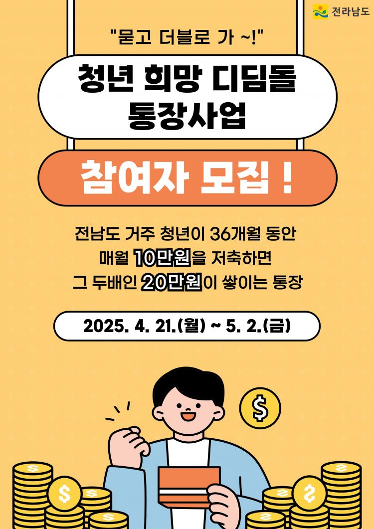 Àü¶ó³²µµ´Â ¿À´Â 5¿ù2ÀϱîÁö ¡®2025³â û³â Èñ¸Áµðµõµ¹ ÅëÀ塯 »ç¾÷ÀÇ ½Å±Ô Âü¿©ÀÚ¸¦ ¸ðÁýÇϰí, Àû°Ý½É»ç¸¦ °ÅÃÄ 7¿ù ÃÑ 825¸íÀ» ÃÖÁ¾ ¼±Á¤ÇÑ´Ù°í 23ÀÏ ¹àÇû´Ù.