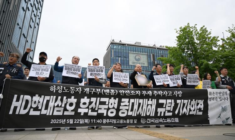Àü±¹±Ý¼Ó³ëµ¿Á¶ÇÕ ±¤ÁÖÀü³²ÁöºÎ°¡ 22ÀÏ ¿ÀÀü ±¤ÁÖ ±¤»ê±¸ ±¤ÁÖ°í¿ë³ëµ¿Ã» ¾Õ¿¡¼ ¡®¾ÈÀüÁ¶Ä¡ ºÎÀç, HDÇö´ë»ïÈ£ ÈÄÁø±¹Çü Áß´ëÀçÇØ ±Ôꡝ ±âÀÚȸ°ßÀ» ¿°í Ãß¶ô»ç°í·Î »ç¸ÁÇÑ ³ëµ¿ÀÚÀÇ À¯Á·°ú ÇÔ²² HDÇö´ë»ïÈ£ÀÇ ¾ÈÀü °ü¸® ü°è¸¦ ±ÔźÇϰí ÀÖ´Ù.