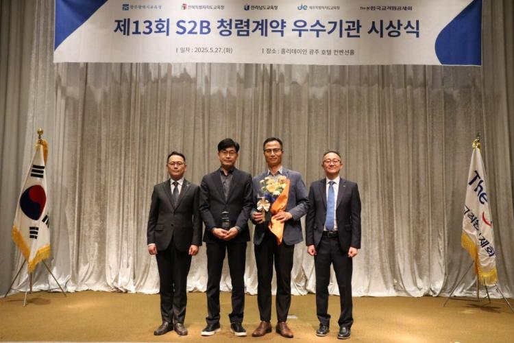 ¿ÀÁØÇå ÀçÁ¤°úÀåÀº ¡°À̹ø ¼ö»óÀº Àü ±³Á÷¿øµéÀÌ Ã»·ÅÇÑ °è¾à¹®È¸¦ À§ÇØ ²ÙÁØÈ÷ ½ÇÃµÇØ¿Â °á°ú¡±¶ó¸ç ¡°¾ÕÀ¸·Îµµ Àü³²¾÷üÀÇ S2B °¡ÀÔÀ» Àû±ØÀûÀ¸·Î µ¶·ÁÇϰí, S2B »ç¿ëÀÚ ±³À° µîÀ» ÅëÇØ Àü³²¾÷ü °è¾à ºñÀ²À» Á¦°íÇÏ´Â µî Áö¿ª°æÁ¦ Ȱ¼ºÈ¿¡ ÃÖ¼±À» ´ÙÇϰڴ١±¶ó°í ¹àÇû´Ù.